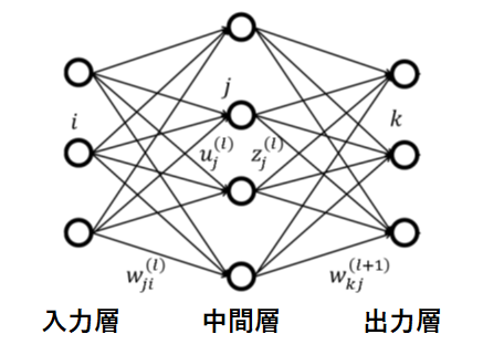 入力層から中間層を経て出力層に到達した予測が期待する出力を満たす(=損失関数がゼロに近づく)ためには、各層のニューロン(=神経細胞)にデータが送られる際に重みのあるパラメータが必要になります。